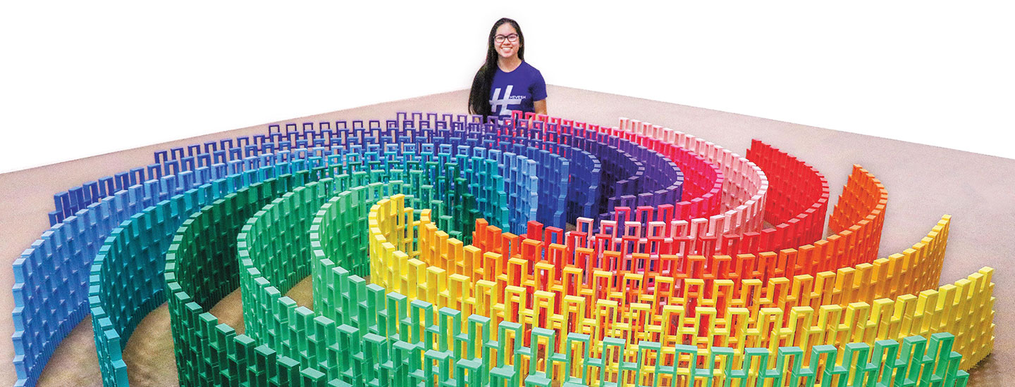 By age 10, Hevesh was hooked. “I became obsessed with dominoes,” she says. She collected more and more dominoes. She started posting online videos of her own designs.