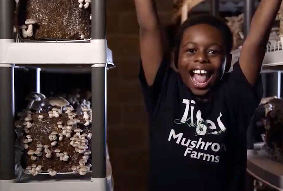 Watch a video about a kid who grows mushrooms.